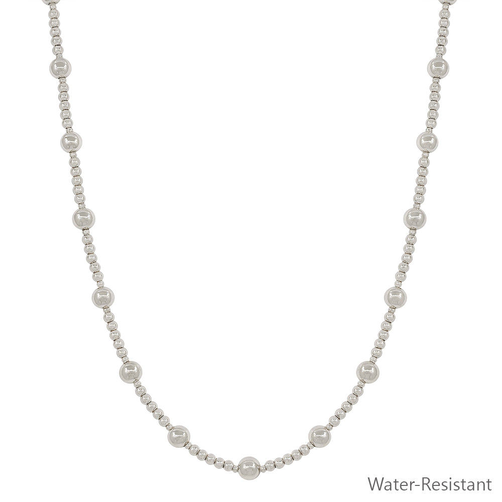 Water Resistant 3MM Silver Bead with 6MM Silver Beaded 16"-18" Necklace