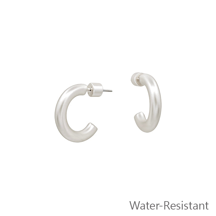 Water Resistant .75" Simple Matte Silver Hoop Earring