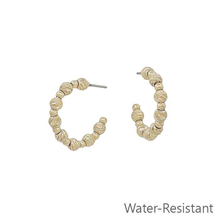Water Resistant Twisted Gold Bead 1" 4MM Hoop Earring