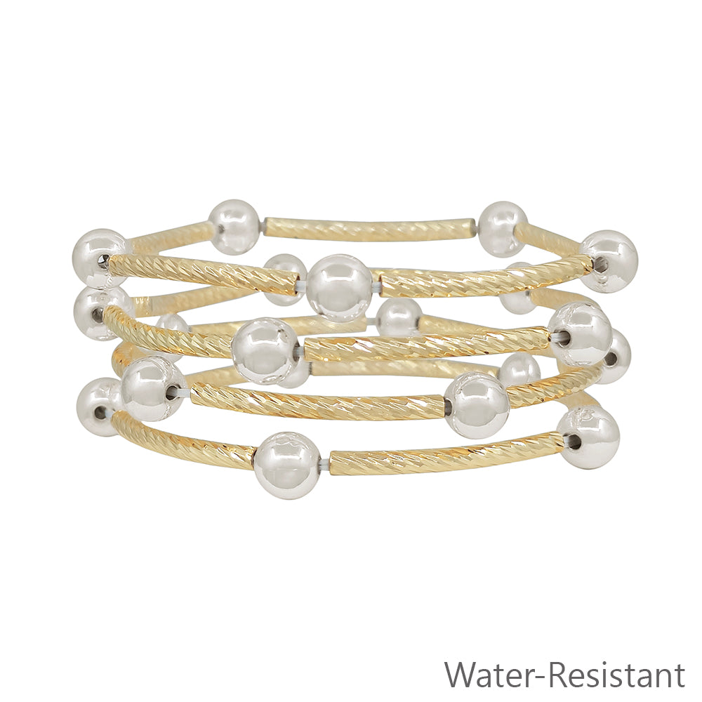 Water Resistant Set of 4 Gold Piping and Stretch Bracelets