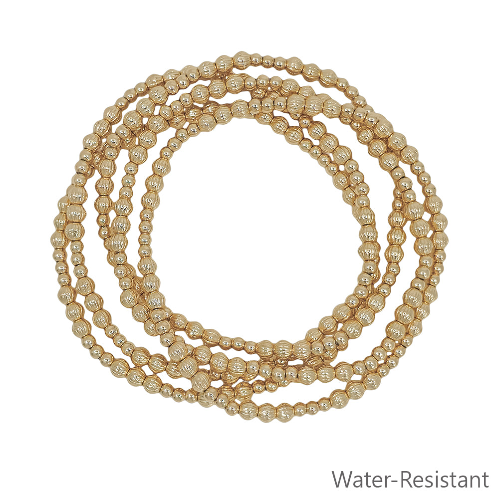 Water Resistant Set of 5 4MM and 3MM Beaded Stretch Bracelets
