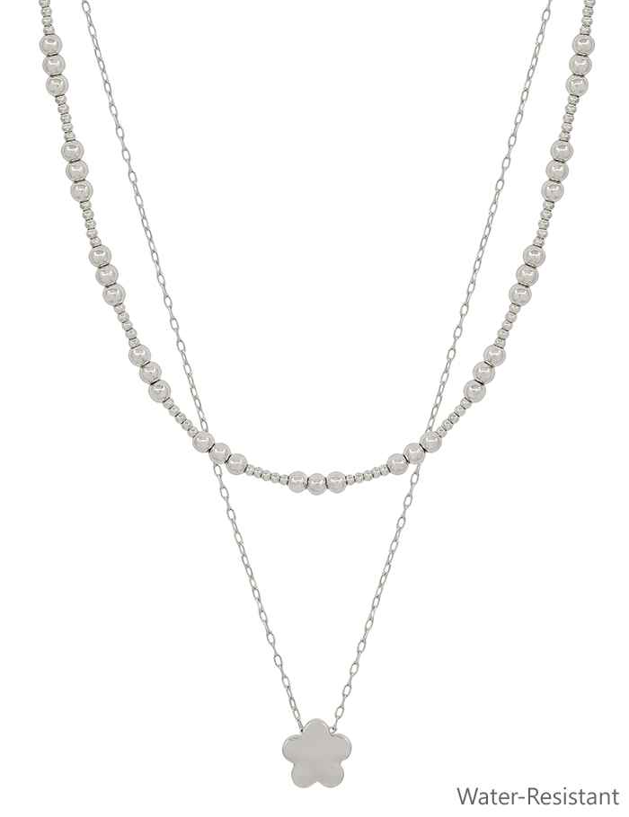 Water Resistant Silver Beaded and Silver Flower 16"-18" Necklace