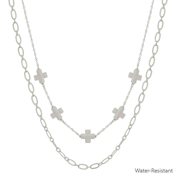 Water Resistant Silver Cross with Chain Layered 16"-18" Necklace