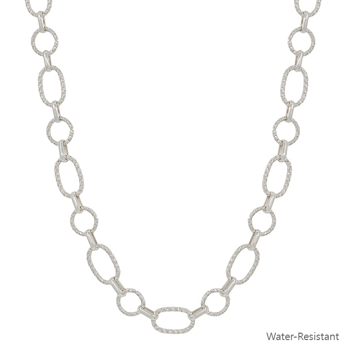 Water Resistant Silver Textured Open Circle Chain 16"-18" Necklace