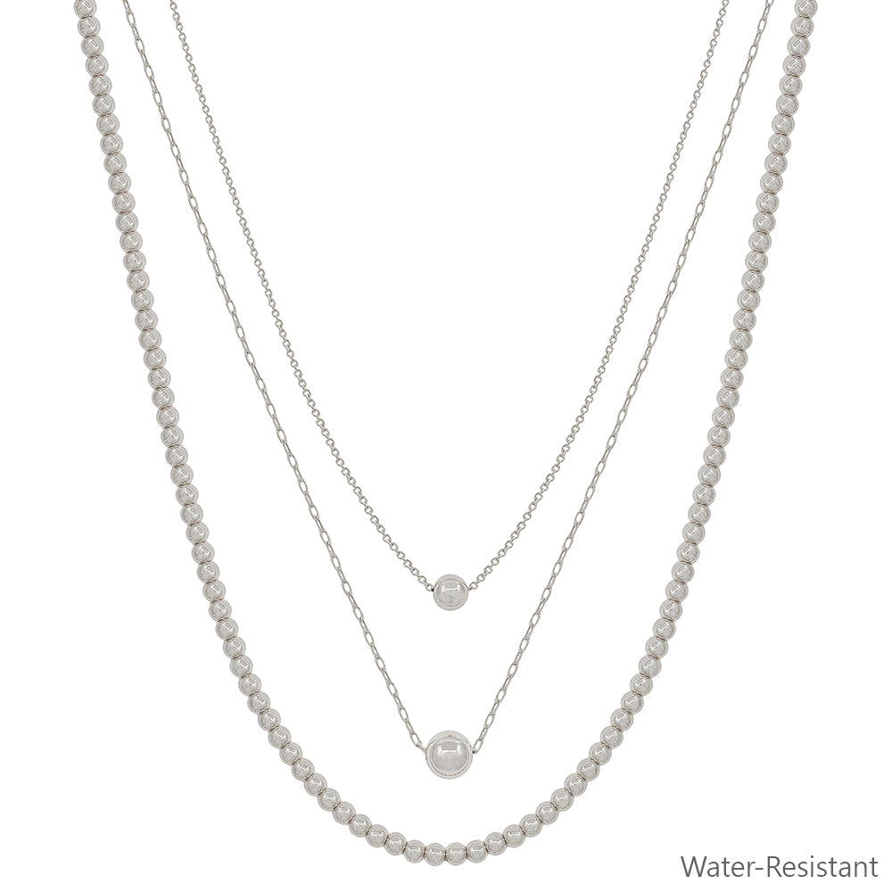 Water Resistant Triple Layered Silver Beaded and Chain 16"-18" Necklace