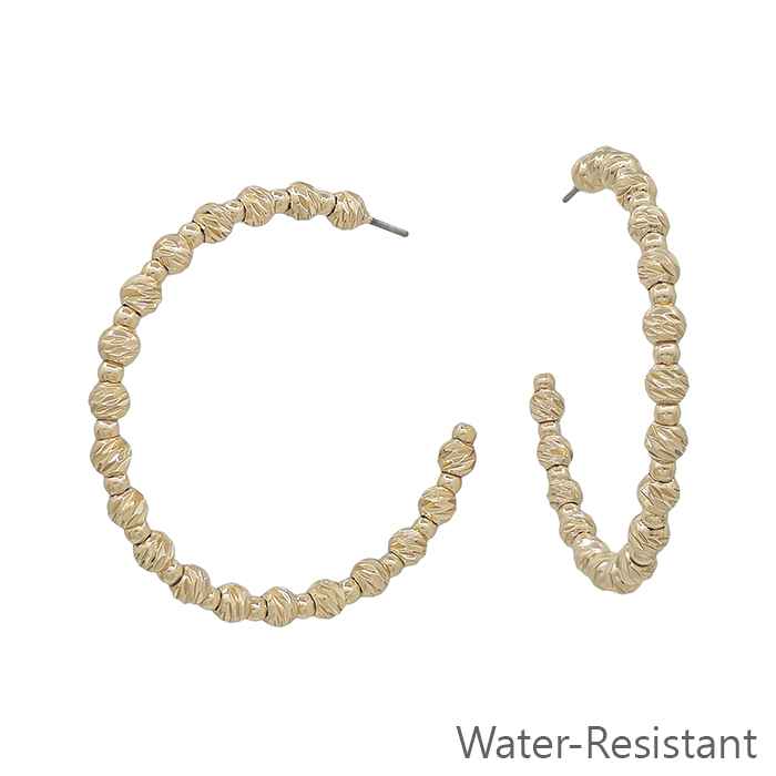Water Resistant Twisted Gold Bead 2" 4MM Hoop Earring