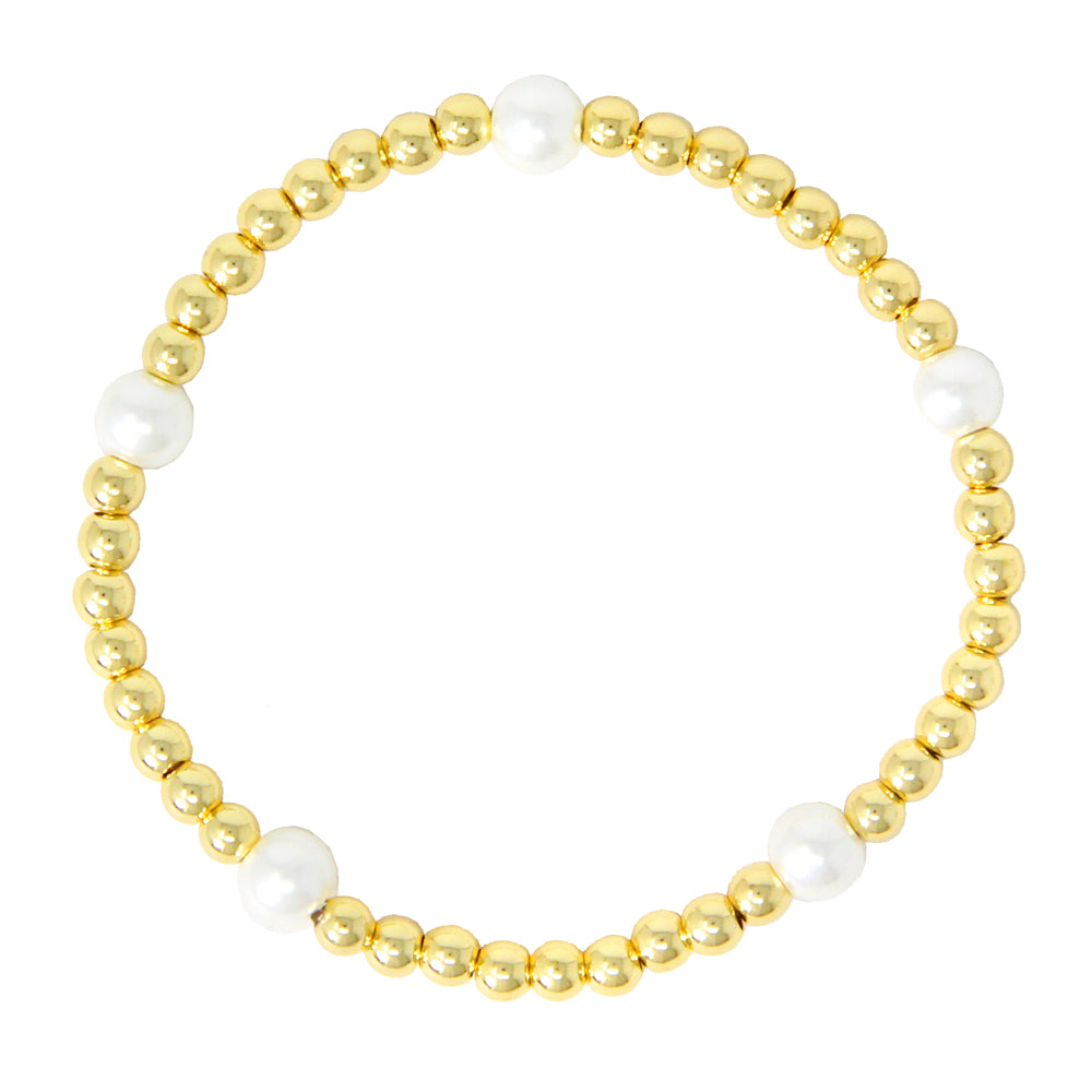 Waterproof Stainless-Steel 4mm Gold Beaded and Pearl Stretch Bracelet