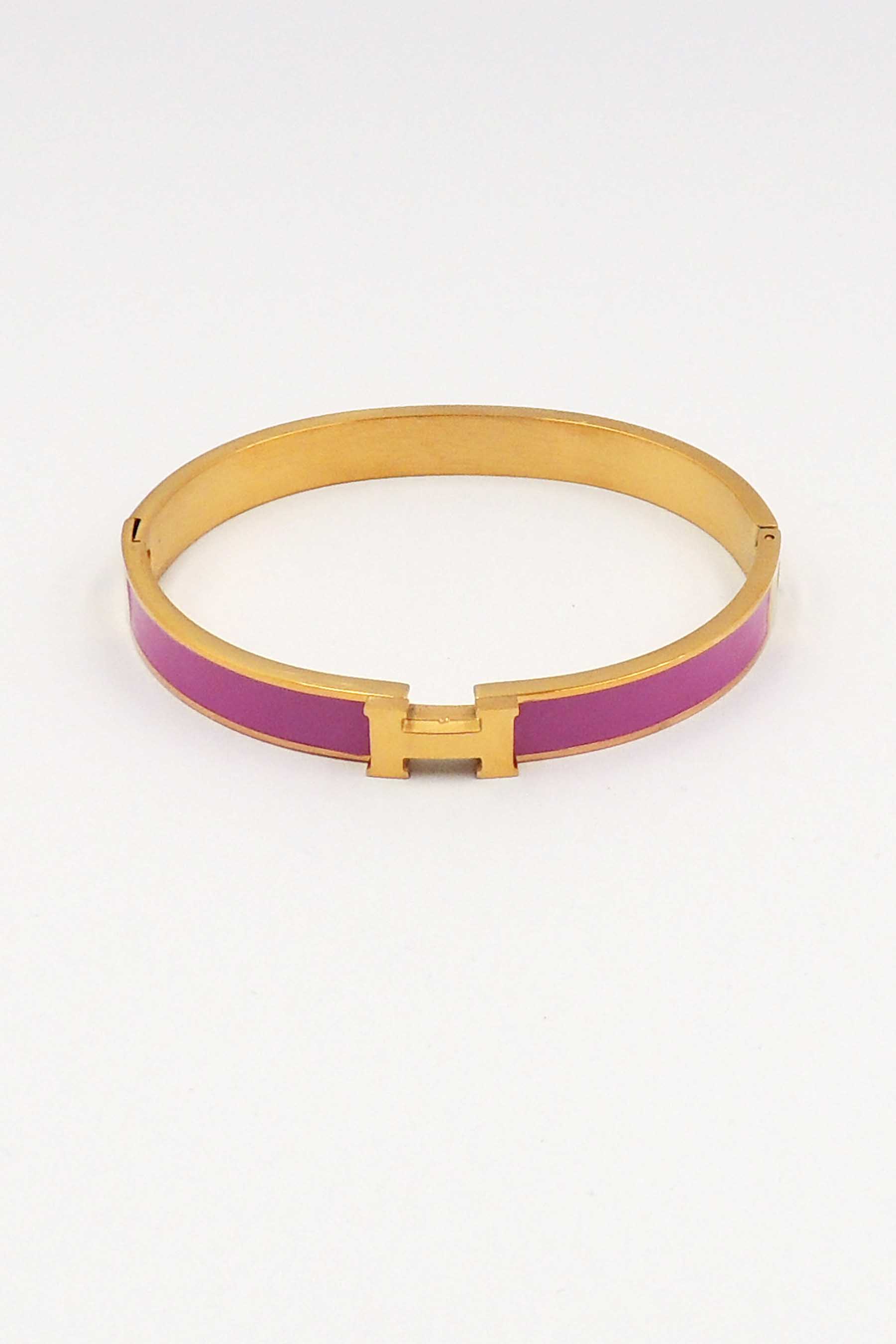 Waterproof Stainless-Steel Gold H with HotPink Enamel Coloring, Best Seller!